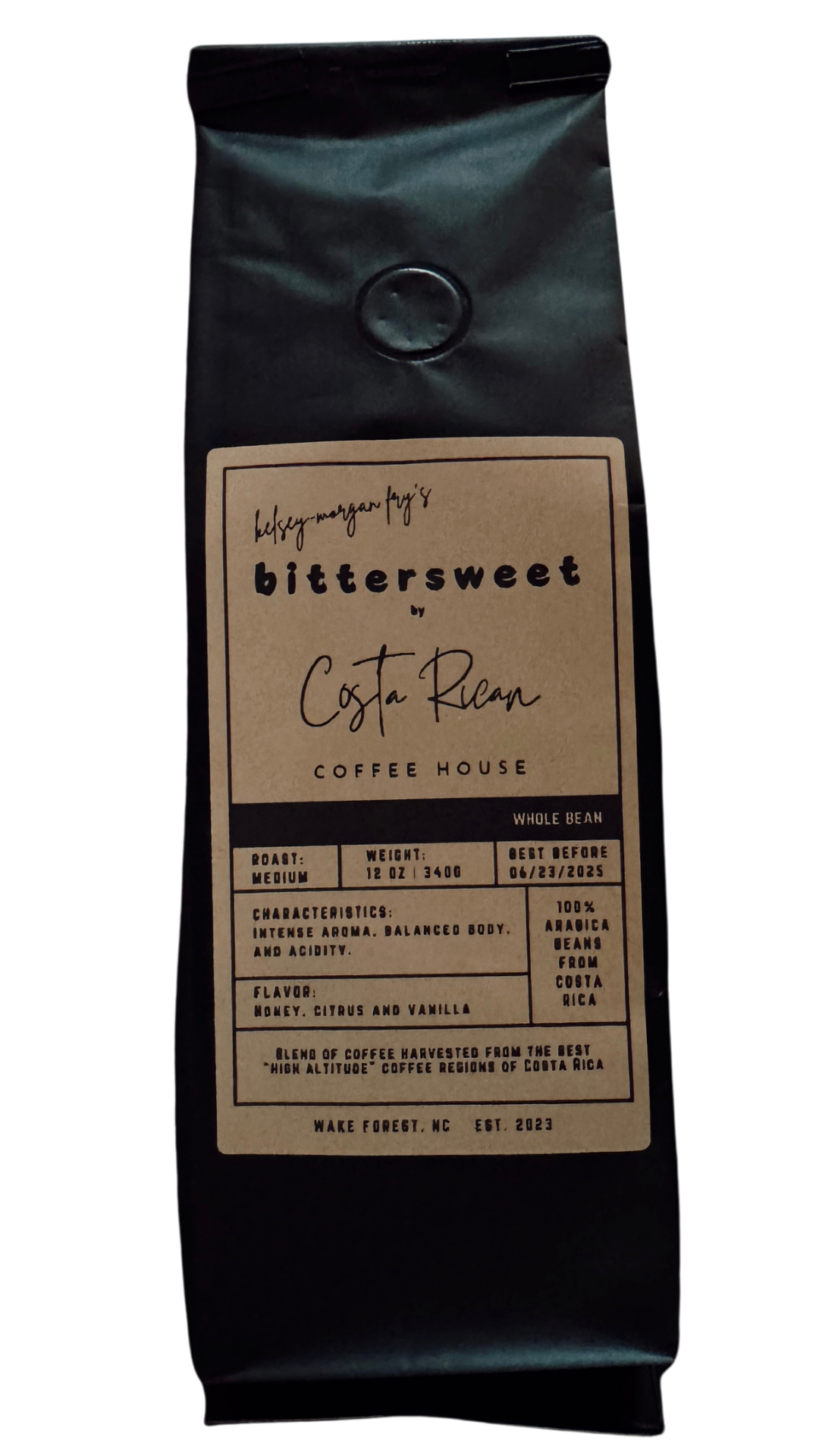 The Bittersweet Blend x @kelseymorganfry by Costa Rican Coffee House is not just a coffee; it embodies the complex emotions evoked by its name. The term "bittersweet" has become Kelsey’s favorite oxymoron; capturing the dual nature and beauty that we would never know joy without sorrow. This blend offers a reflection on how we can often find both beauty and depth in contrasting feelings - and how that’s ok.